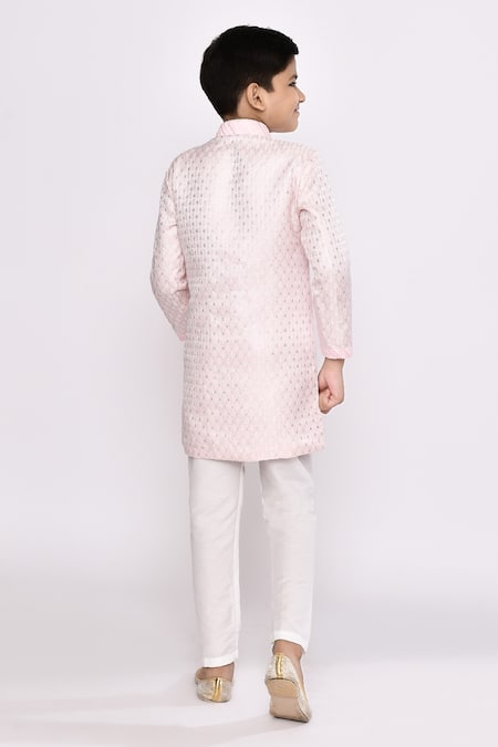 Buy_Petite Pomme_Pink Kota Doria, Silk Sequins Embroidered Asymmetric Sherwani And Pyjama Set _at_Aza_Fashions