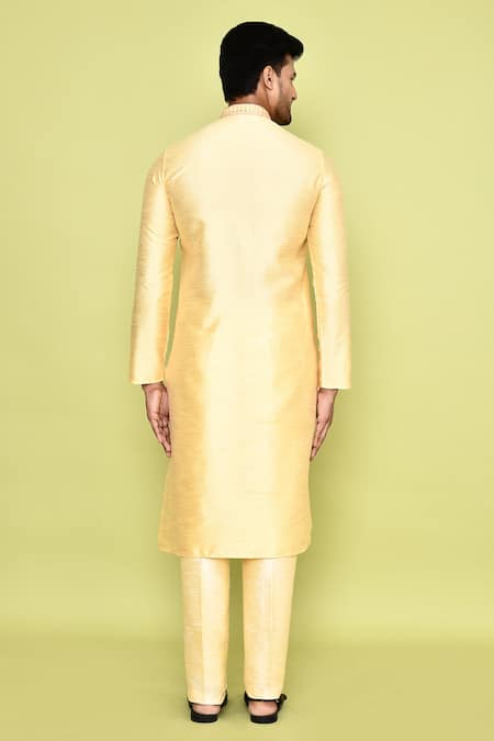 Buy_Arihant Rai Sinha_Yellow Silk Sequins, Embroidery Kurta With Pant _Online_at_Aza_Fashions