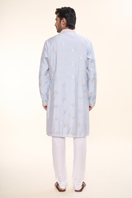 Grey Silk Sequins, Mirrors Embroidered Kurta