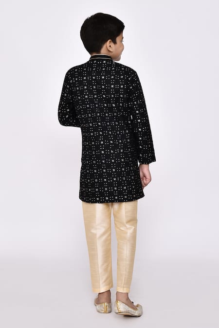 Buy_Petite Pomme_Black Silk Sequins Embroidered Sherwani And Pyjama Set _at_Aza_Fashions
