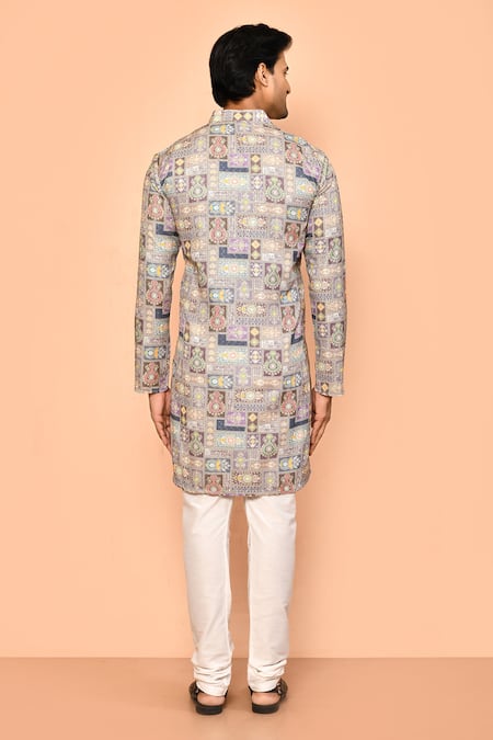Multicolored straight kurta featuring intricate thread and sequin embroidery with statement buttons