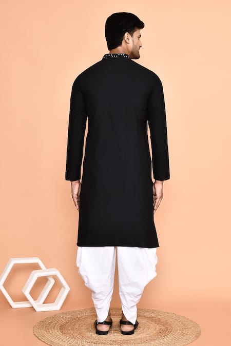 Buy_Arihant Rai Sinha_Black Silk, Cotton Mirrors Linear Embroidered Kurta With Patiyala _at_Aza_Fashions