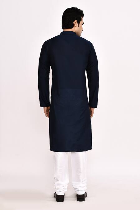 Buy_Arihant Rai Sinha_Blue Silk Embroidery Classic Long Kurta _Online_at_Aza_Fashions