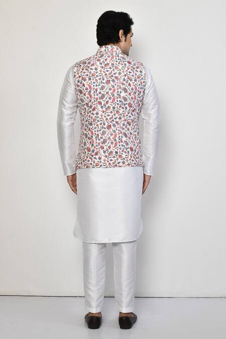 Buy_Arihant Rai Sinha_White Cotton Embroidery Floral Pattern Nehru Jacket _Online_at_Aza_Fashions