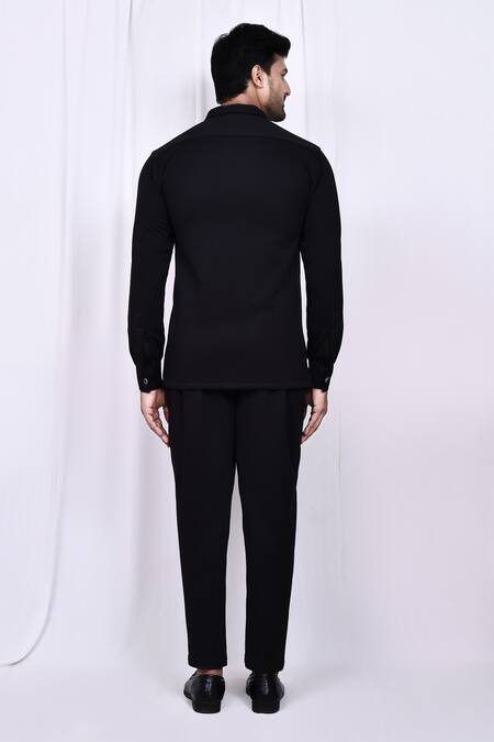 Buy_Arihant Rai Sinha_Black Lycra Solid Button Down Shirt And Pant Set _Online_at_Aza_Fashions