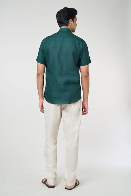 Green Linen Solid Half Sleeves Shirt