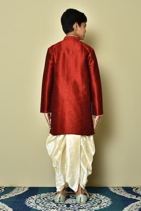 Buy_Petite Pomme_Red Silk Solid Kurta And Beige Dhoti Pant Set _Online_at_Aza_Fashions