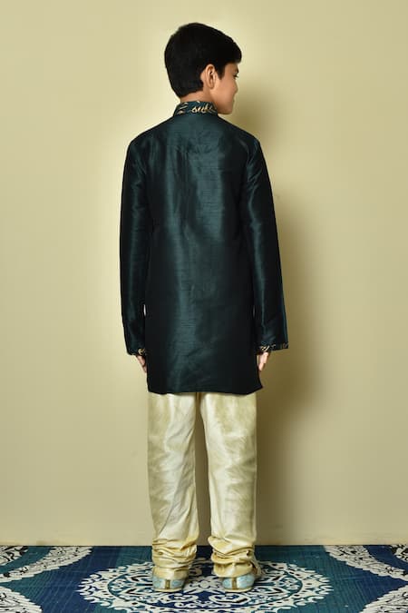 Green dupion art silk straight kurta featuring floral embroidery on the placket