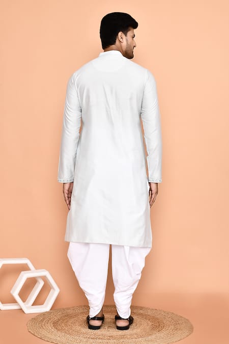 Buy_Arihant Rai Sinha_Grey Silk, Cotton Embroidery Solid Thread Kurta With Patiyala _Online_at_Aza_Fashions