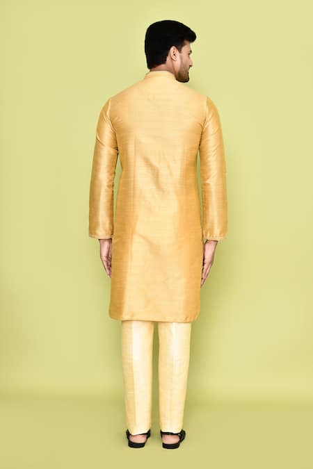 Buy_Arihant Rai Sinha_Beige Silk Stones Embroidered Placket Kurta With Pant_at_Aza_Fashions