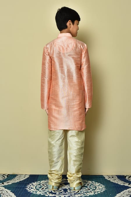 Buy_Petite Pomme_Pink Silk Straight Full Sleeve Kurta _at_Aza_Fashions