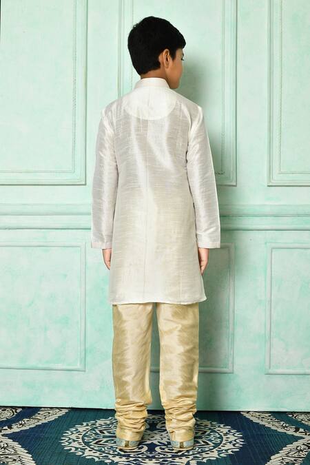 Off White Silk, Polyester Straight Mandarin Collar Kurta