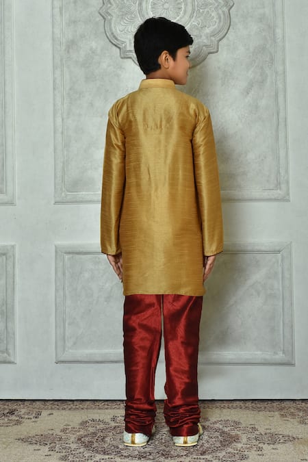 Gold kurta in dupion art silk featuring a mandarin collar and shank button placket