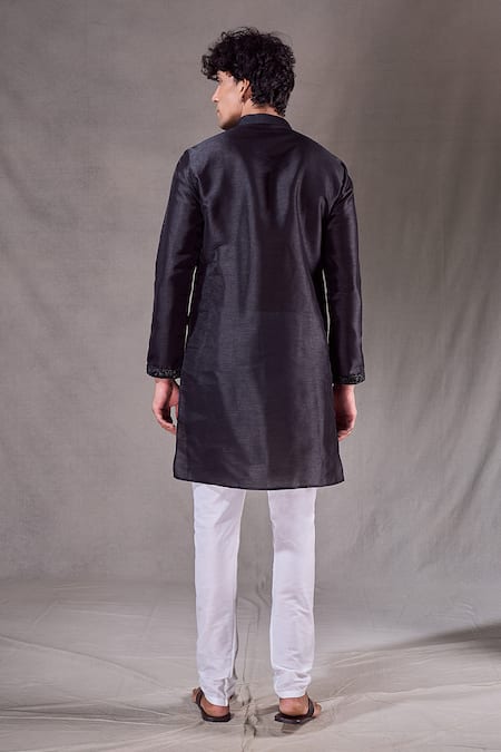 Black Silk Sequins Straight Panel Embroidered Kurta