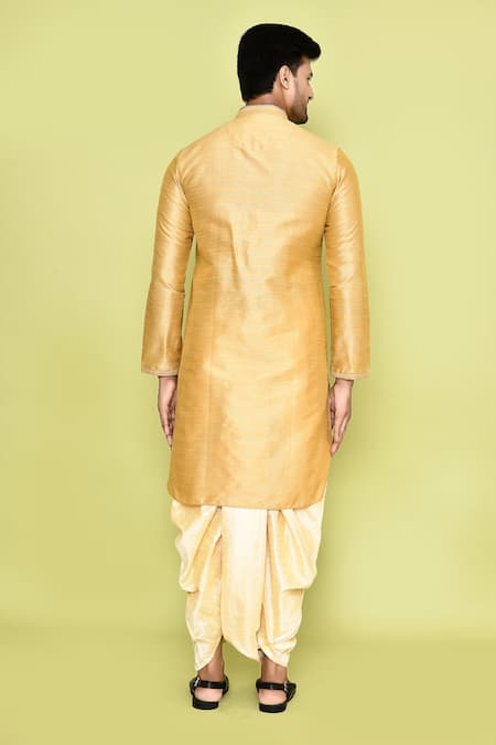 Buy_Arihant Rai Sinha_Yellow Silk Straight Plain Kurta With Dhoti Pant_Online_at_Aza_Fashions