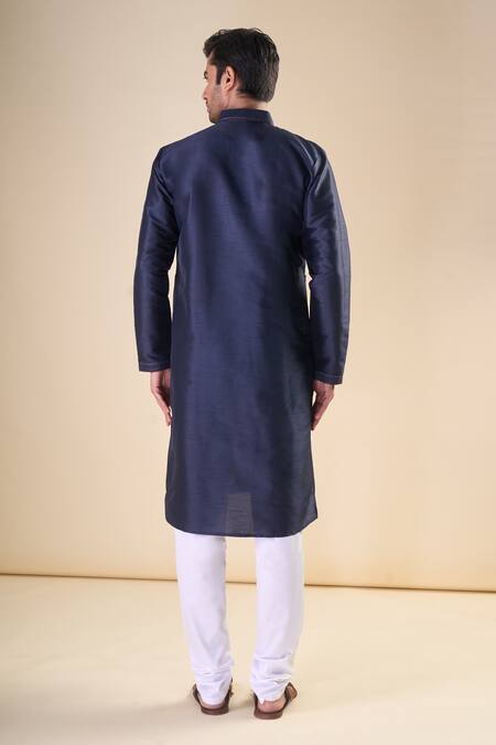 Navy blue solid straight kurta featuring full sleeves and a band collar
