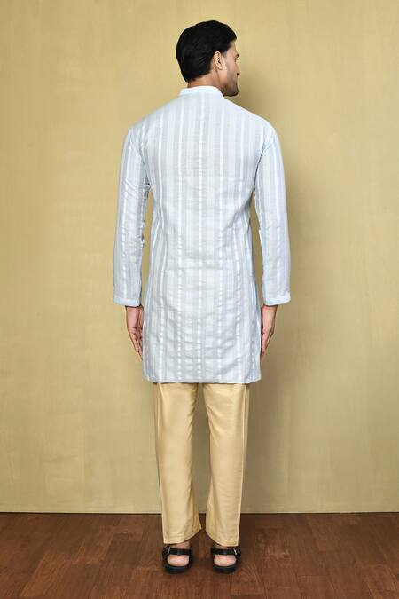 Buy_Arihant Rai Sinha_Grey Cotton, Jacquard Stripe Woven Kurta And Pyjama Set_at_Aza_Fashions