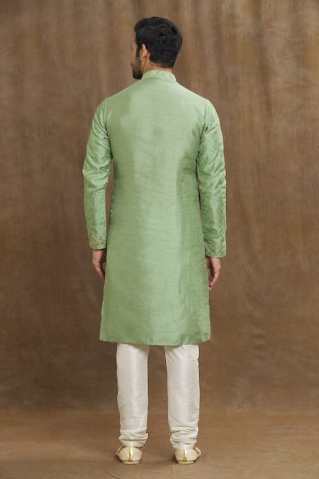 Green kurta featuring all over embroidered floral swirl motifs with a straight silhouette