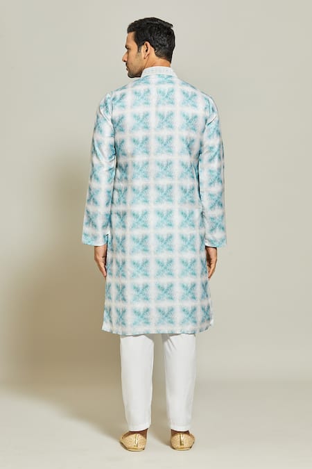 Buy_Arihant Rai Sinha_Blue Cotton, Silk Embroidery Synodic Helix Maze Print Kurta Set _Online_at_Aza_Fashions