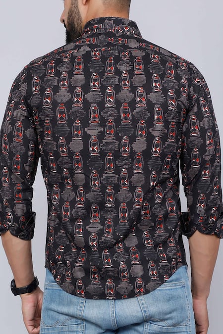 Black Cotton Abstract Lantern Print Casual Shirt