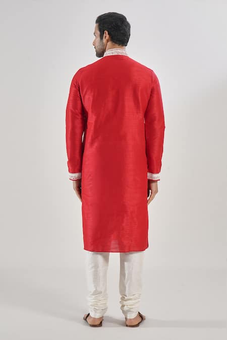 Shop_Arihant Rai Sinha_Red Silk Embroidery Kurta Set With Churidar _Online_at_Aza_Fashions