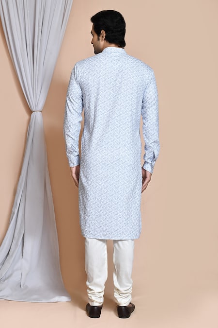 Buy_Arihant Rai Sinha_Grey Cotton Embroidery Thread Kurta Set _at_Aza_Fashions