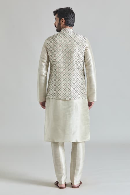 Buy_Arihant Rai Sinha_Green Silk Embroidery Thread Pista Bundi _Online_at_Aza_Fashions