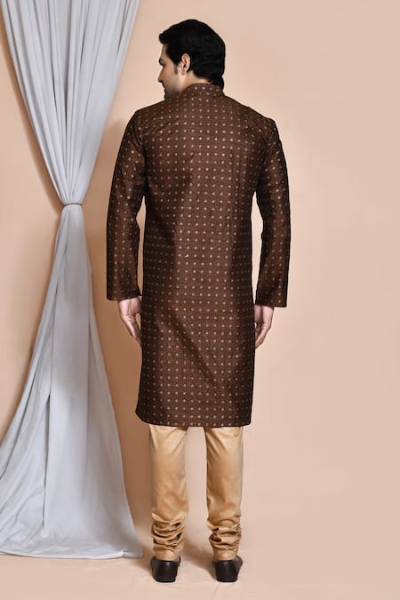 Buy_Arihant Rai Sinha_Brown Silk, Chanderi Sequins, Embroidery Thread Work Kurta Set_at_Aza_Fashions