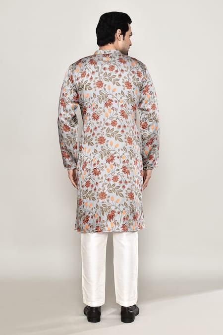 Multicolor floral print kurta featuring a mandarin collar and gota lace detail on the placket