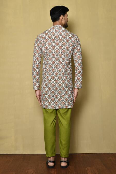 Multi color kurta featuring floral vintage print and tonal chikankari thread embroidery