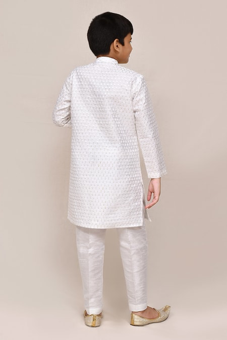Petite Pomme_White Silk Sequins, Embroidery Art Kurta And Pant Set _Online_at_Aza_Fashions