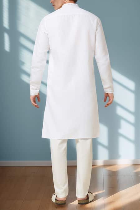 Arihant Rai Sinha_White Linen Embroidery Pure Long Kurta _at_Aza_Fashions
