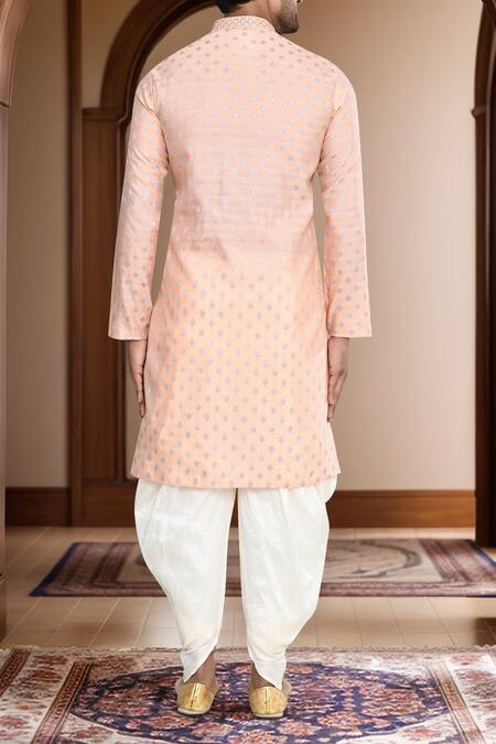 Peach Brocade, Silk Woven Ethnic Motif Kurta Set