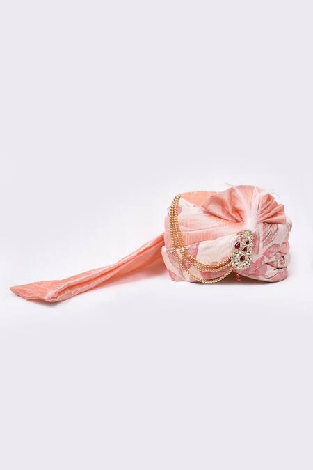 Pink-peach art silk & jacquard dual-tone safa featuring placement gold-tone woven motifs