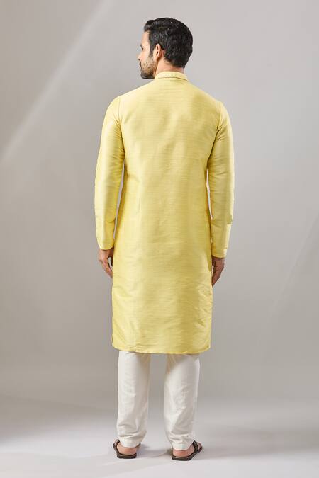 Yellow kurta made from plain Banarasi art silk featuring self design