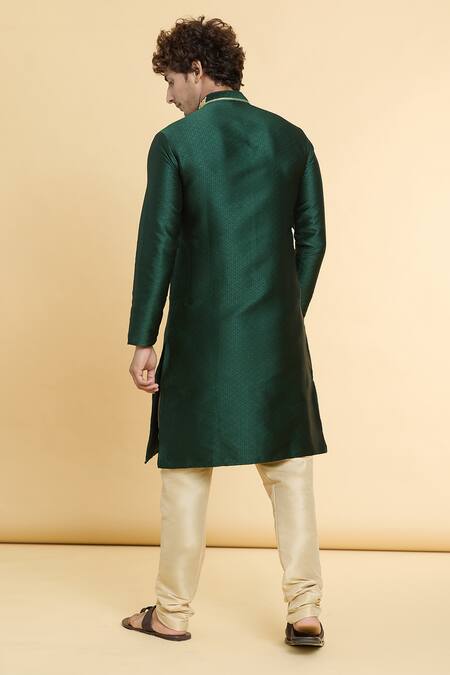 Green Jacquard, Silk Zari Embroidered Placket Kurta