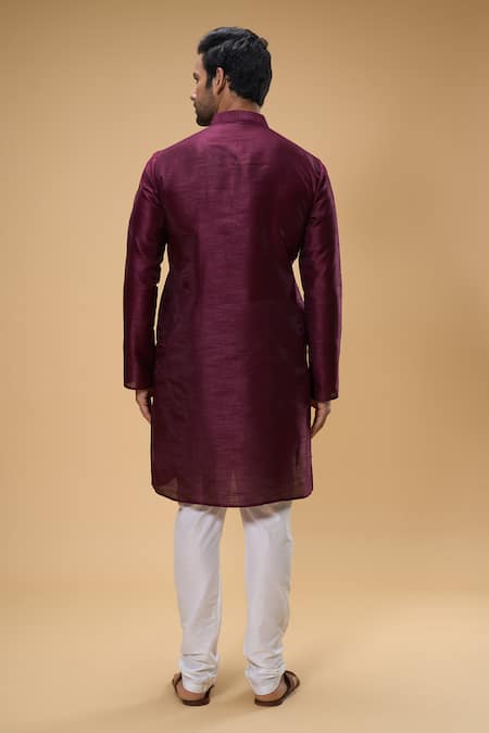 Maroon kurta featuring zari thread placement embroidery and a mandarin collar