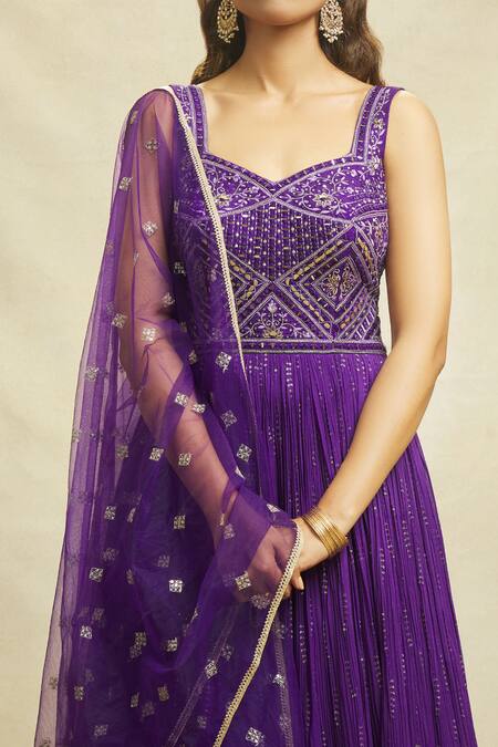 Purple Georgette, Net Embroidery Sweetheart Mirror Work Anarkali With Dupatta