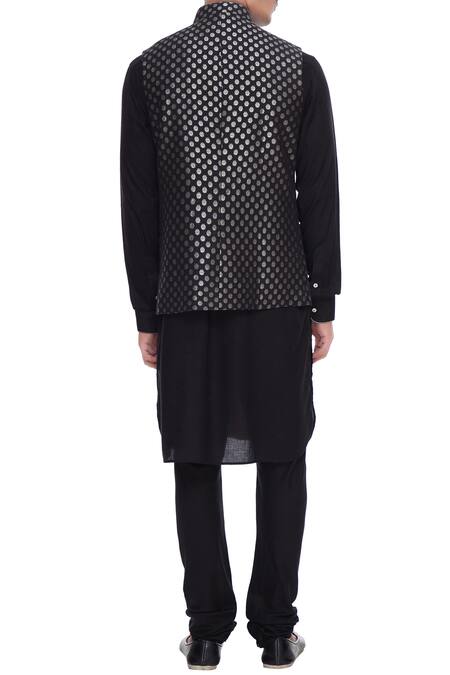 Black Chanderi Banarasi Silk Bundi And Kurta Set