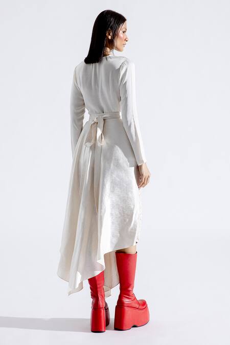 Cream Modal, Satin Cowl Neck Draped Top