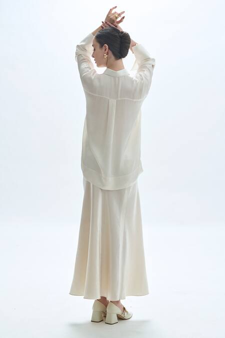 Buy_Aroka_Ivory Modal, Satin Collared Kimono Styled Shirt_at_Aza_Fashions