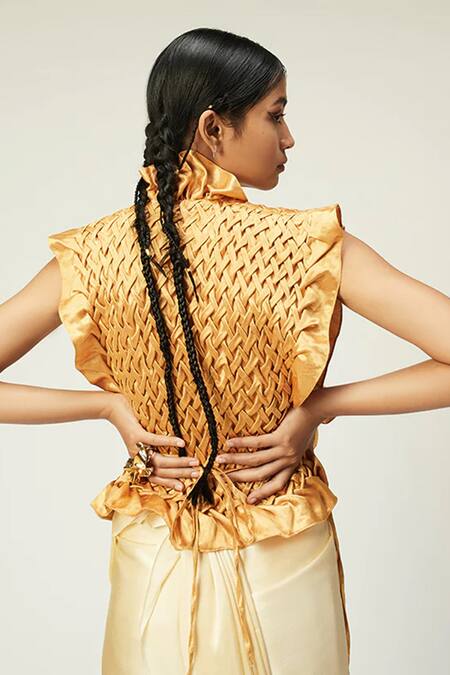 Yellow Vegan Mashru Silk Plain Open Phoenix Bib