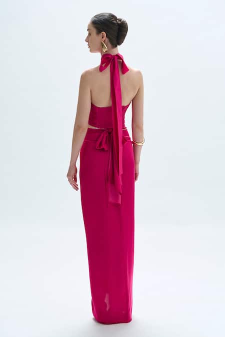 Pink Modal, Satin Halter Neck Pleated Crop Top