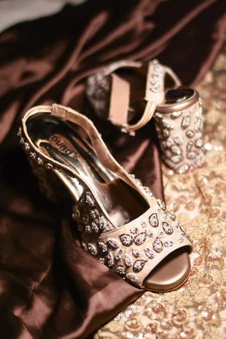 Pearl embroidery detailing on the upper, Adjustable back strap for a secure fit, Open toe design for breathability