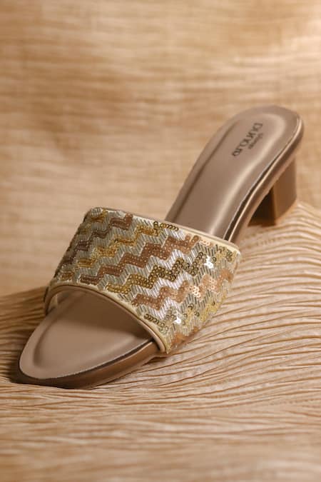 Zigzag sequin pattern on the strap, Block heel design