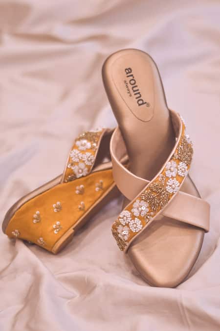 Floral embroidery highlighted with beads and sequins, Criss-cross strap design