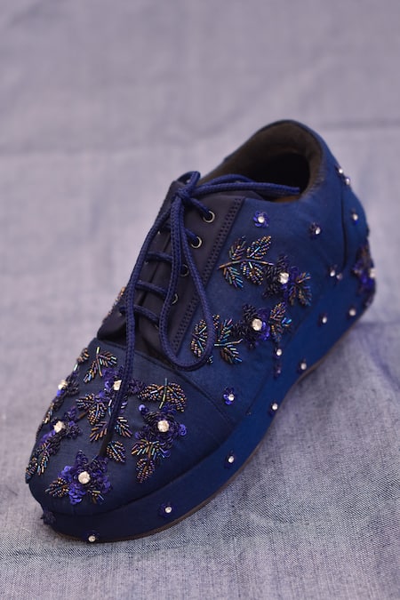 Blue Sequins, Beads, Cut Work Navy Embroidered Sneaker Wedges