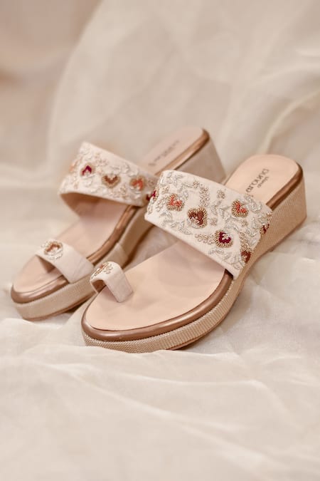Intricate floral embroidery on the straps, Textured wedge base for added comfort