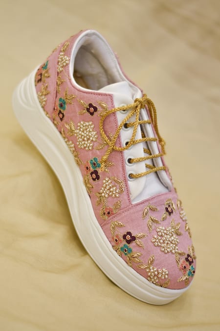 Pink Floral Zardozi Embroidered Sneakers