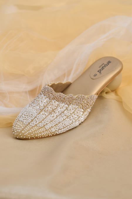 Gold Beads, Sequins Symphony And White Beaded Ombre Embroidered Heels